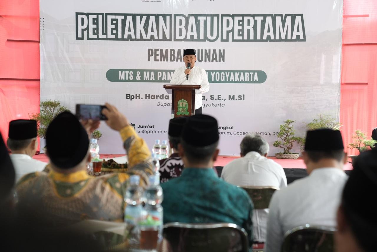 SLEMAN, POPULI.ID – Bupati Sleman Harda Kiswaya menghadiri sekaligus melakukan peletakan batu pertama pembangunan Madrasah Tsanawiyah (MTs) dan Madrasah Aliyah (MA) Pamulangan Yogyakarta di Bulak Tungkul, Sidoarum, Godean, Jumat (5/9/2025).