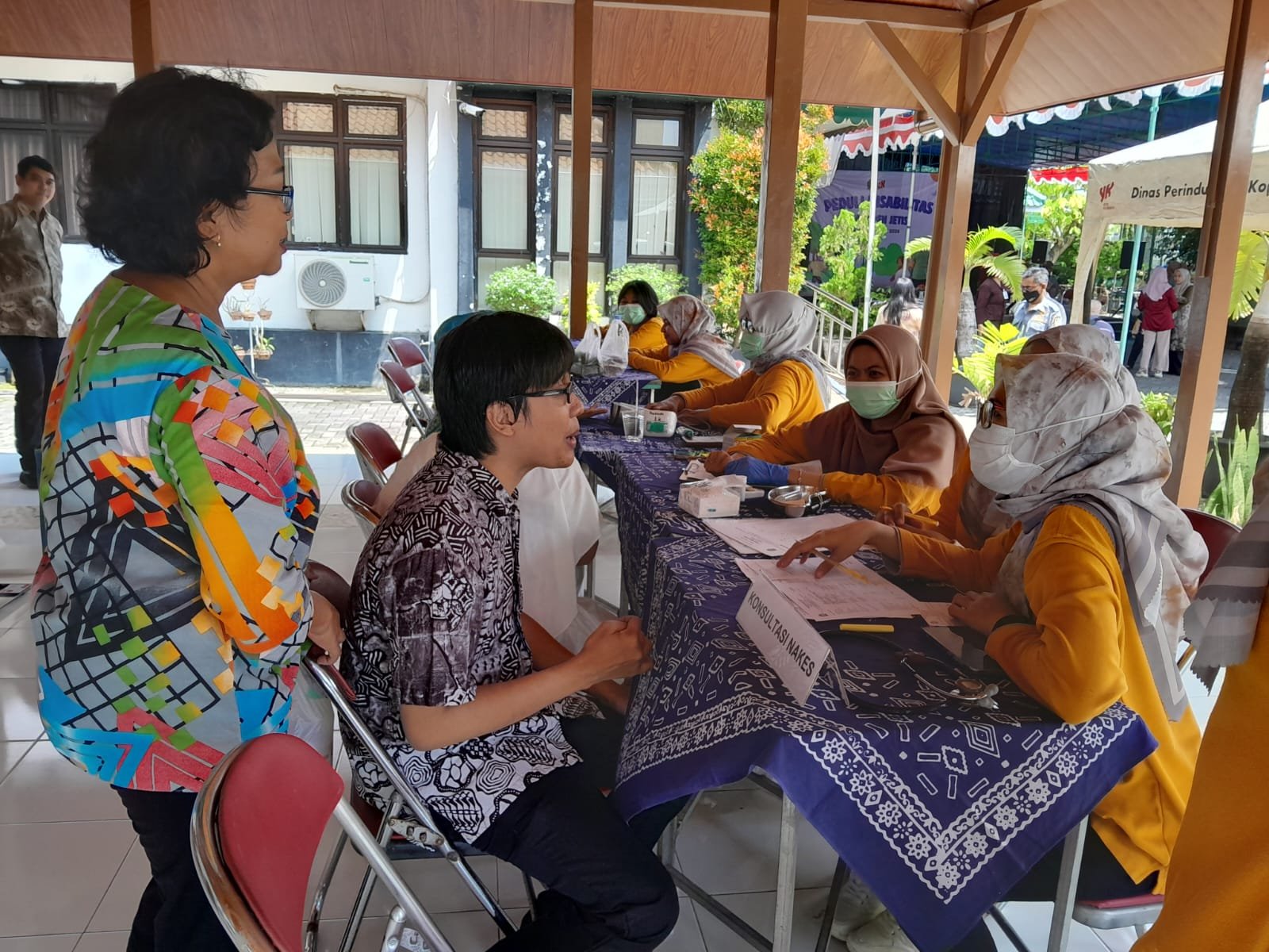 Seorang warga penyandang disabilitas sedang melakukan cek kesehatan gratis dalam gelaran Gebyar Peduli Disabilitas Kemantren Jetis, Kota Yogyakarta, pada Kamis (9/4/2026). [populi.id/Dewi Rukmini]