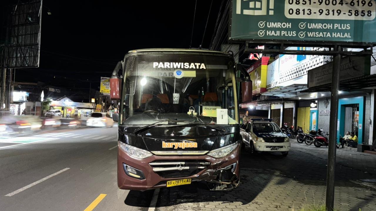 Bus yang terlibat dalam kecelakaan lalu lintas di Jalan Rejowinangun, Kemantren Kotagede, Kota Yogyakarta, pada Minggu (12/4/2026) malam.